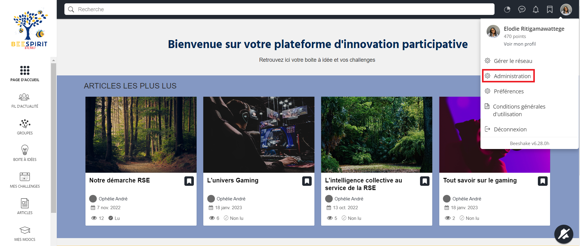 Cliquez sur votre photo de profil en haut à droite de votre écran, puis dans "Administration".