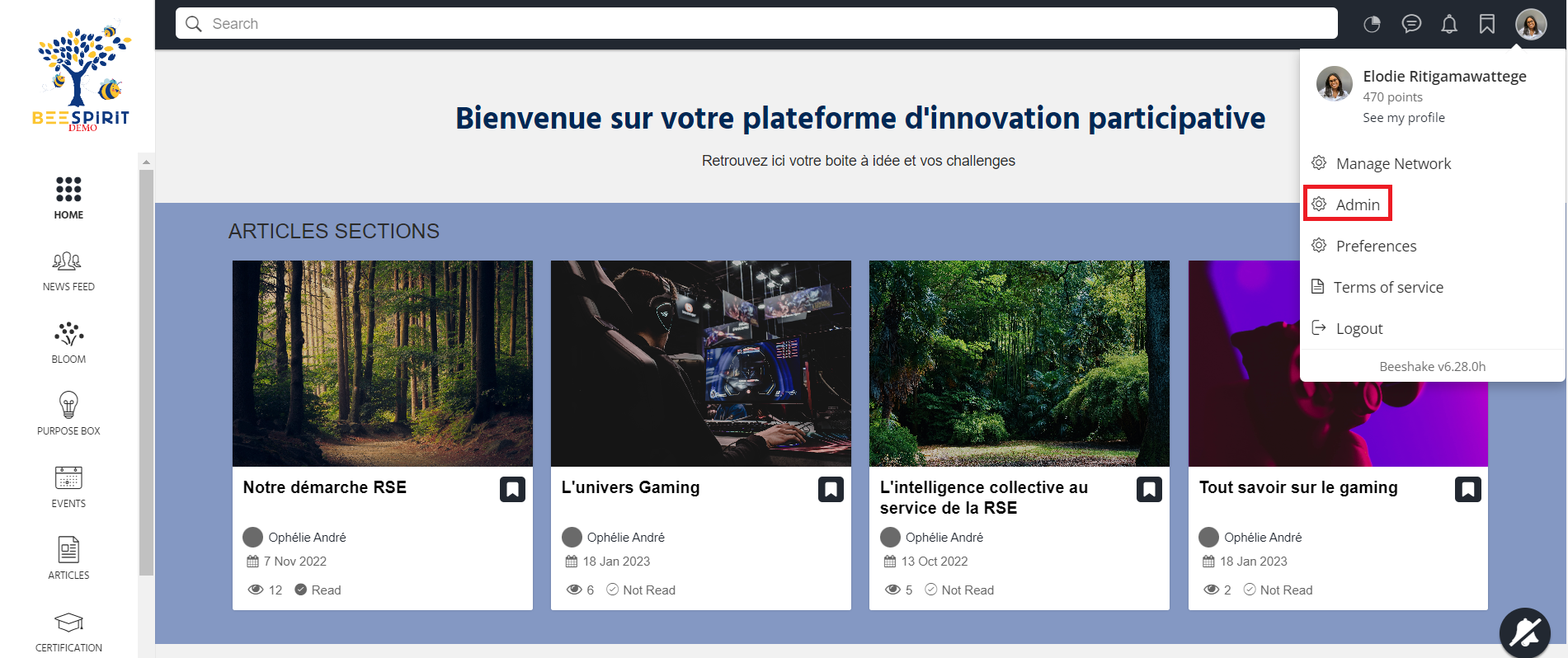 To do this, click on your profile picture in the top right corner of your screen, then in Administration.