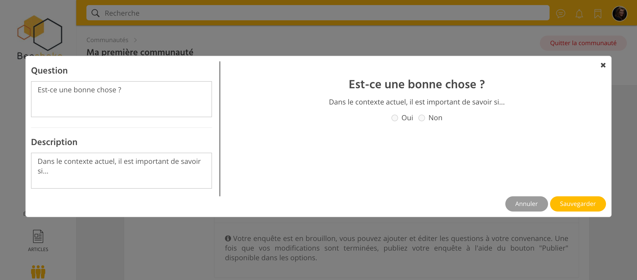 - Une contribution a été automatiquement publiée pour promouvoir l'enquête.