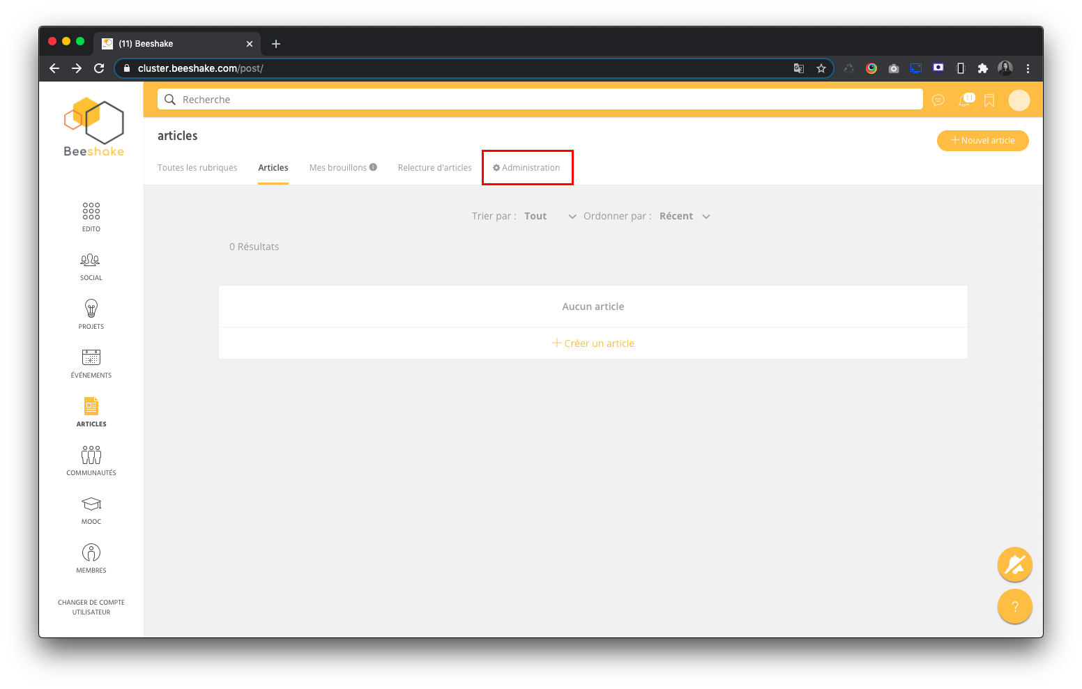 Pour cela, rendez-vous dans l'onglet Administration de votre module Article