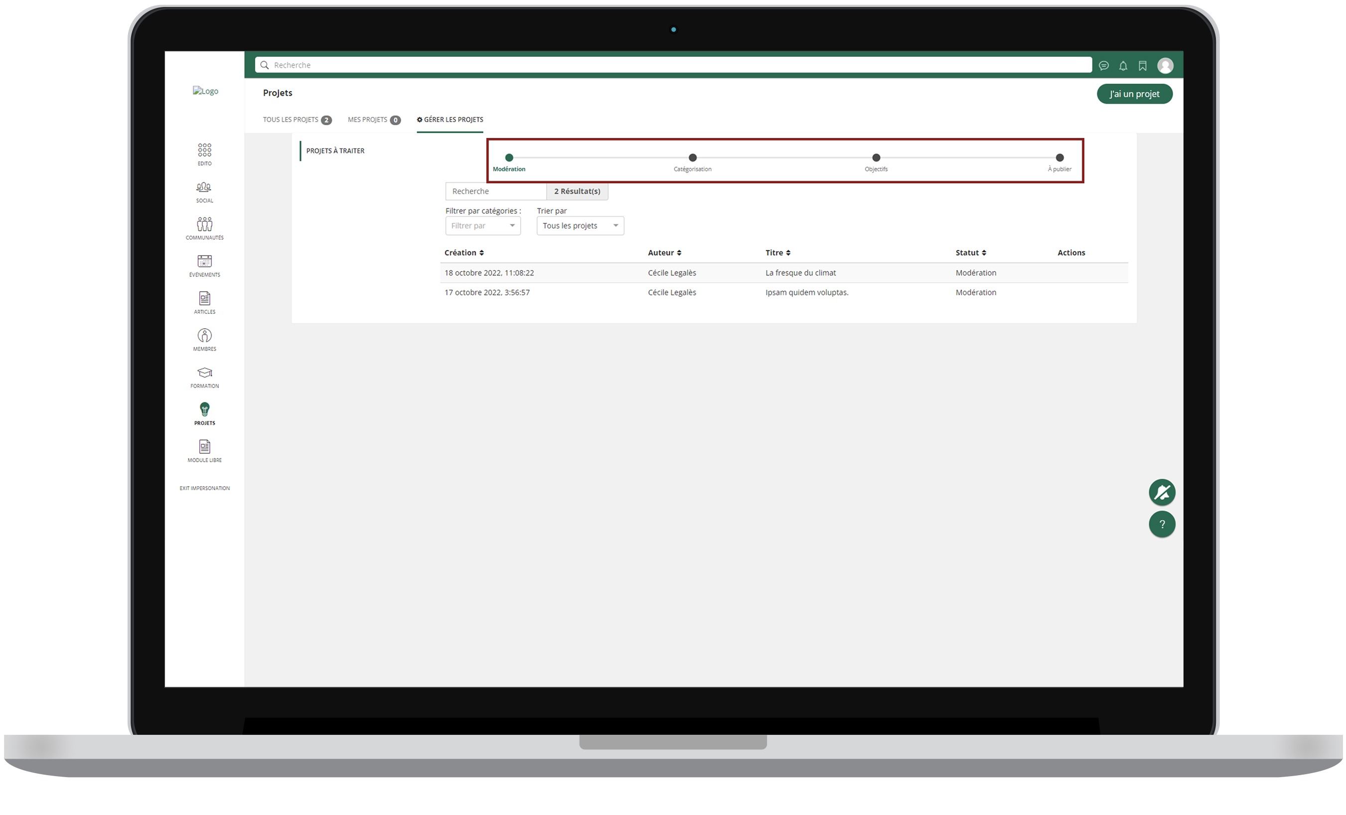 2. Comment modérer les projets
